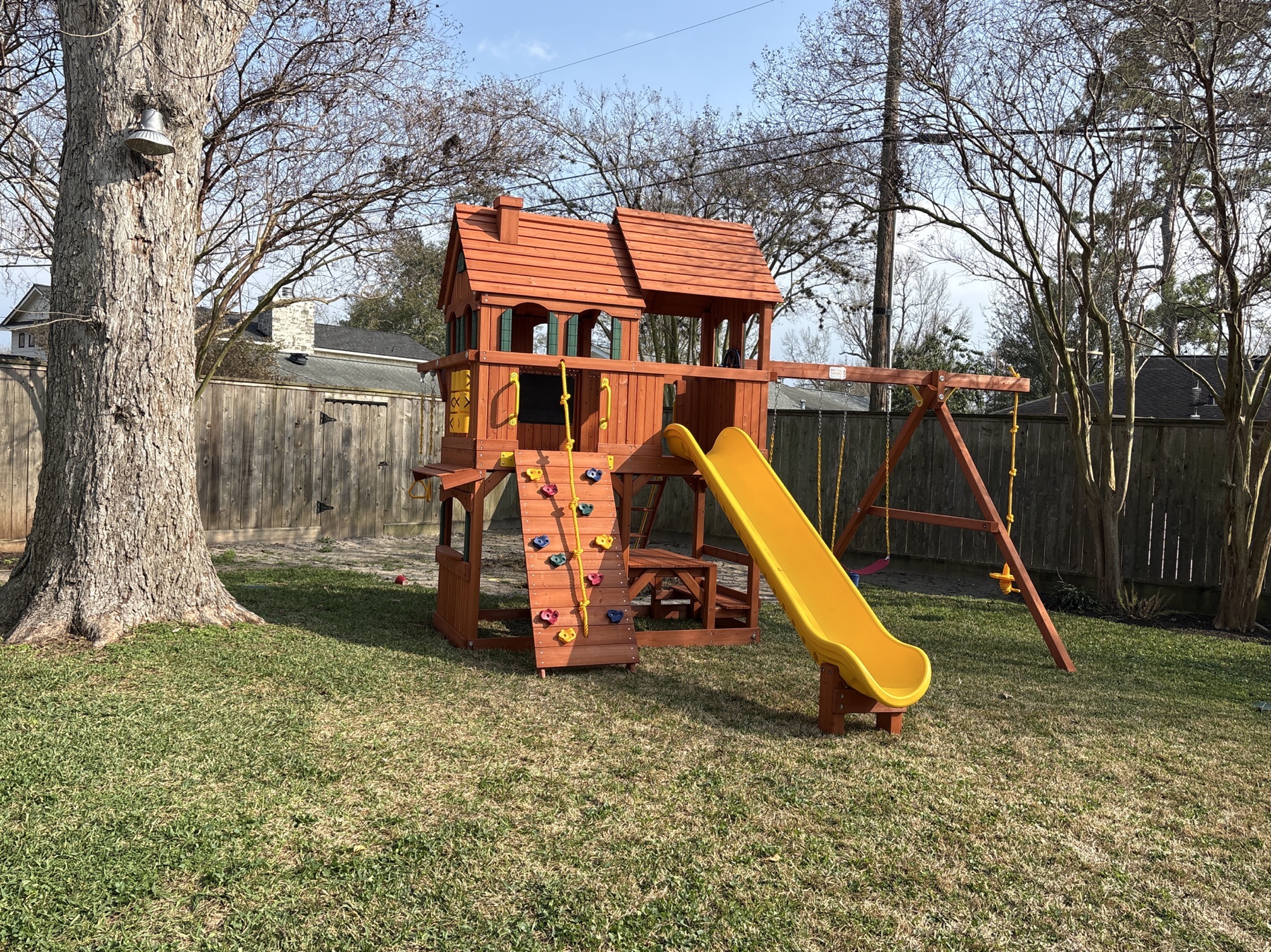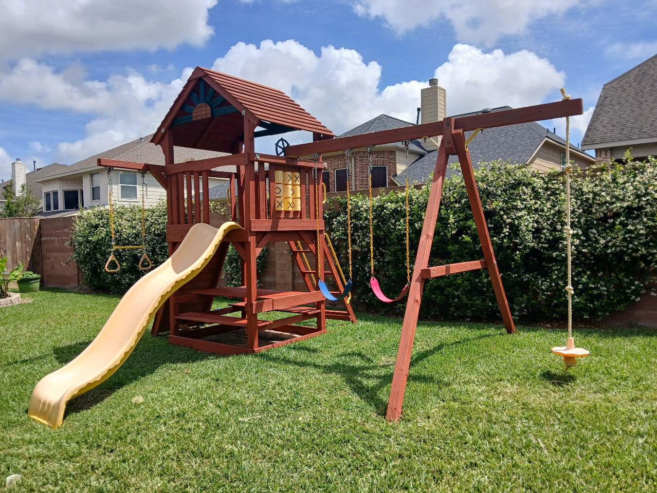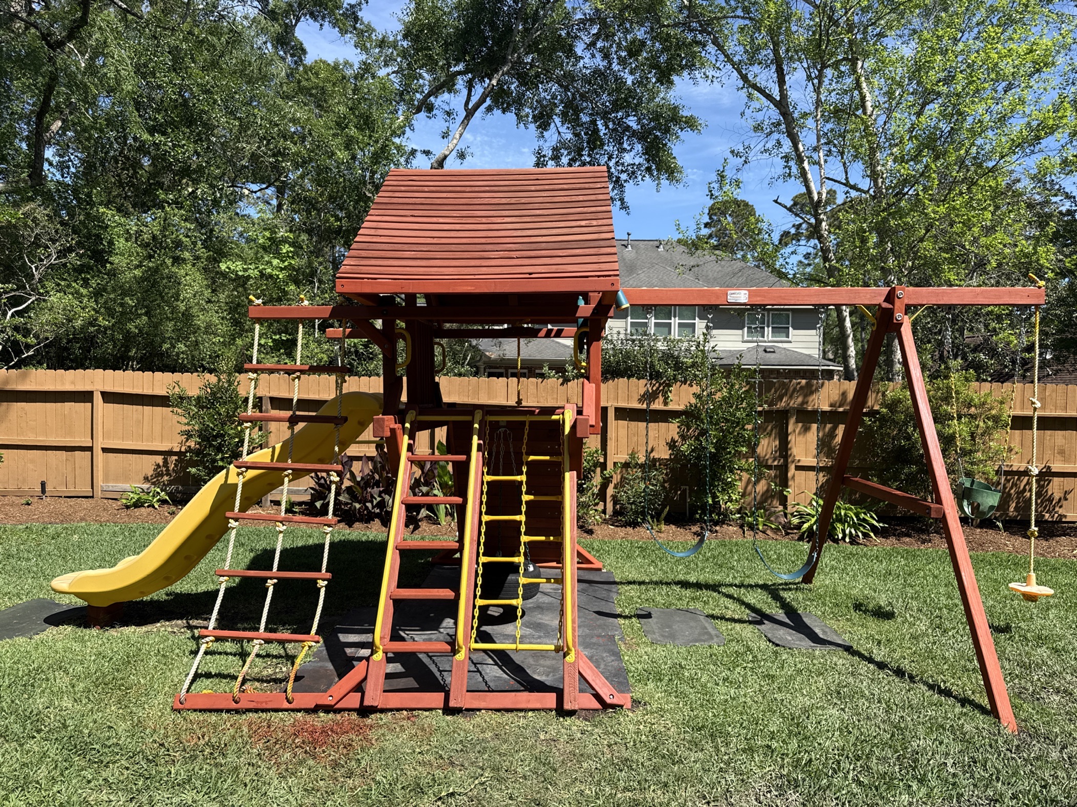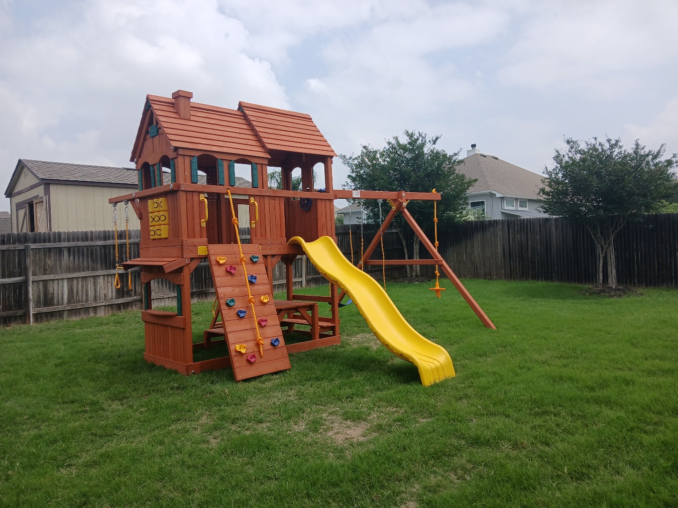 Tree Frogs swing sets are built with chemically free, natural premium lumber which come from certified mills that have sustained yield forest management. Both redwood and cedar are naturally resistant to insects, decay and unlikely to warp or twist. And, because all of our lumber is chemical free and from sustainable forests, it’s not only healthy for families but the world in which they play. Designed for years of birthday parties, play dates and backyard family fun. Tree Frogs swingsets are built to last with a solid warranty to back them up.
