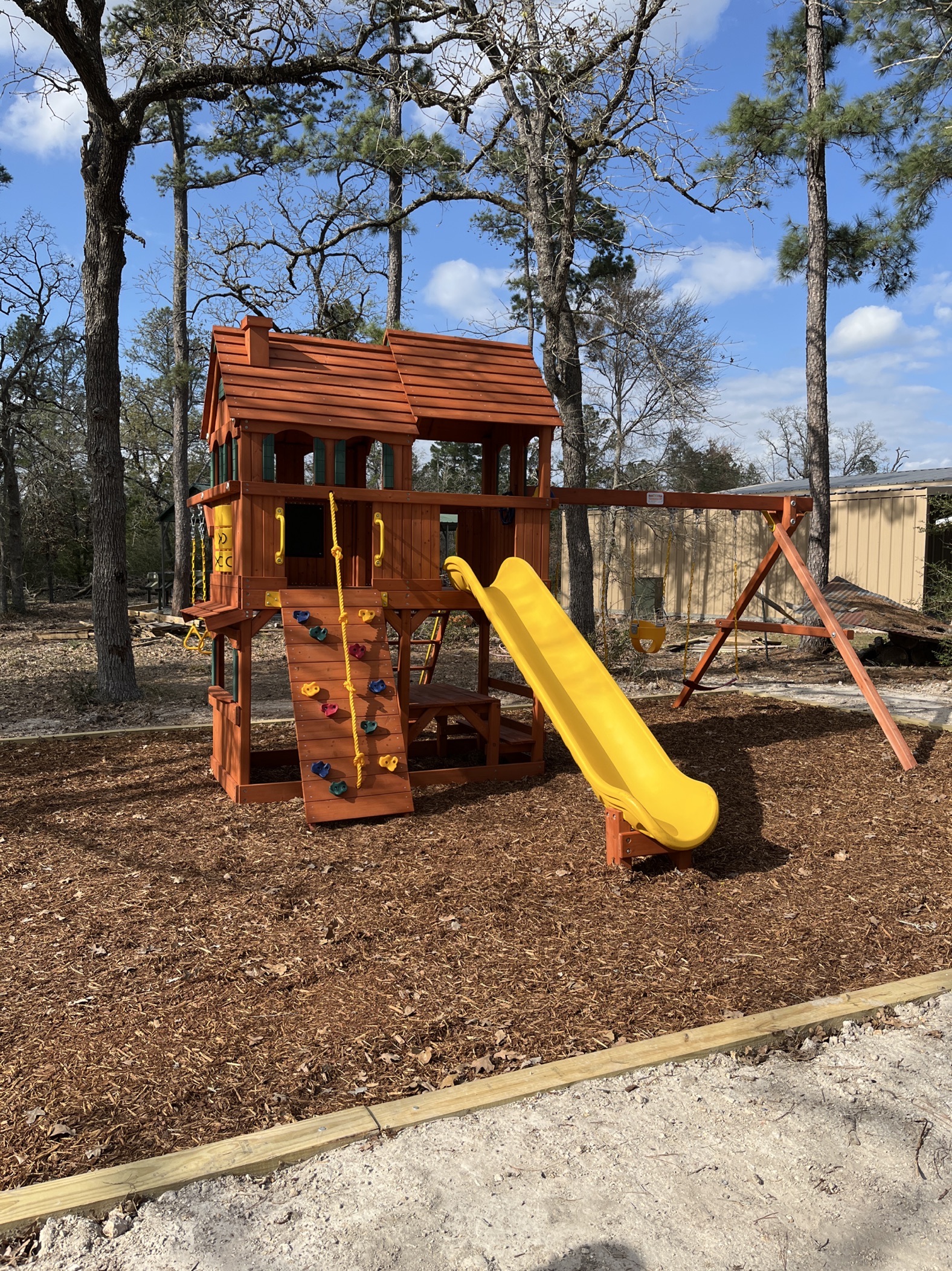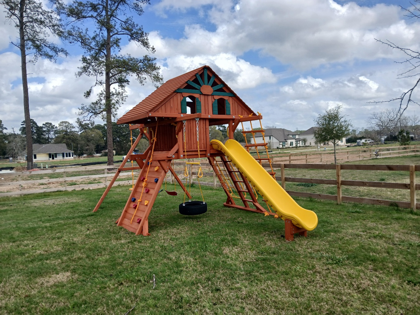 Tree Frogs playlets are designed with safety as our priority. We want our customers to have peace of mind that what they are investing in is as safe as possible. Every swing set is made with recessed hardware and smooth wood, as well as coated chains so fingers don’t get pinched.