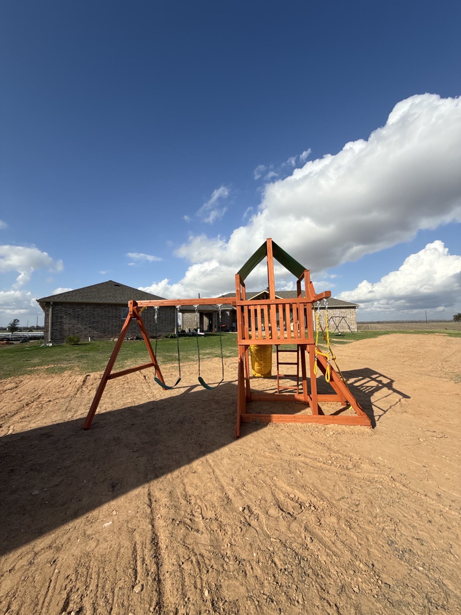 Our swing sets are well-constructed, with no dangerous metal protrusions, and are even strong enough to support heavy adults. Our support gussets are one piece of timber that is notched for superior strength. We recess our hardware for safety and to keep the play set looking beautiful. Your strong, beautiful play set will last for years outdoors and hold a special place in your kid’s memories for life. Our standard swing beams are constructed of 4×6 solid lumber, never laminated. Built for years of sturdy, safe play.
